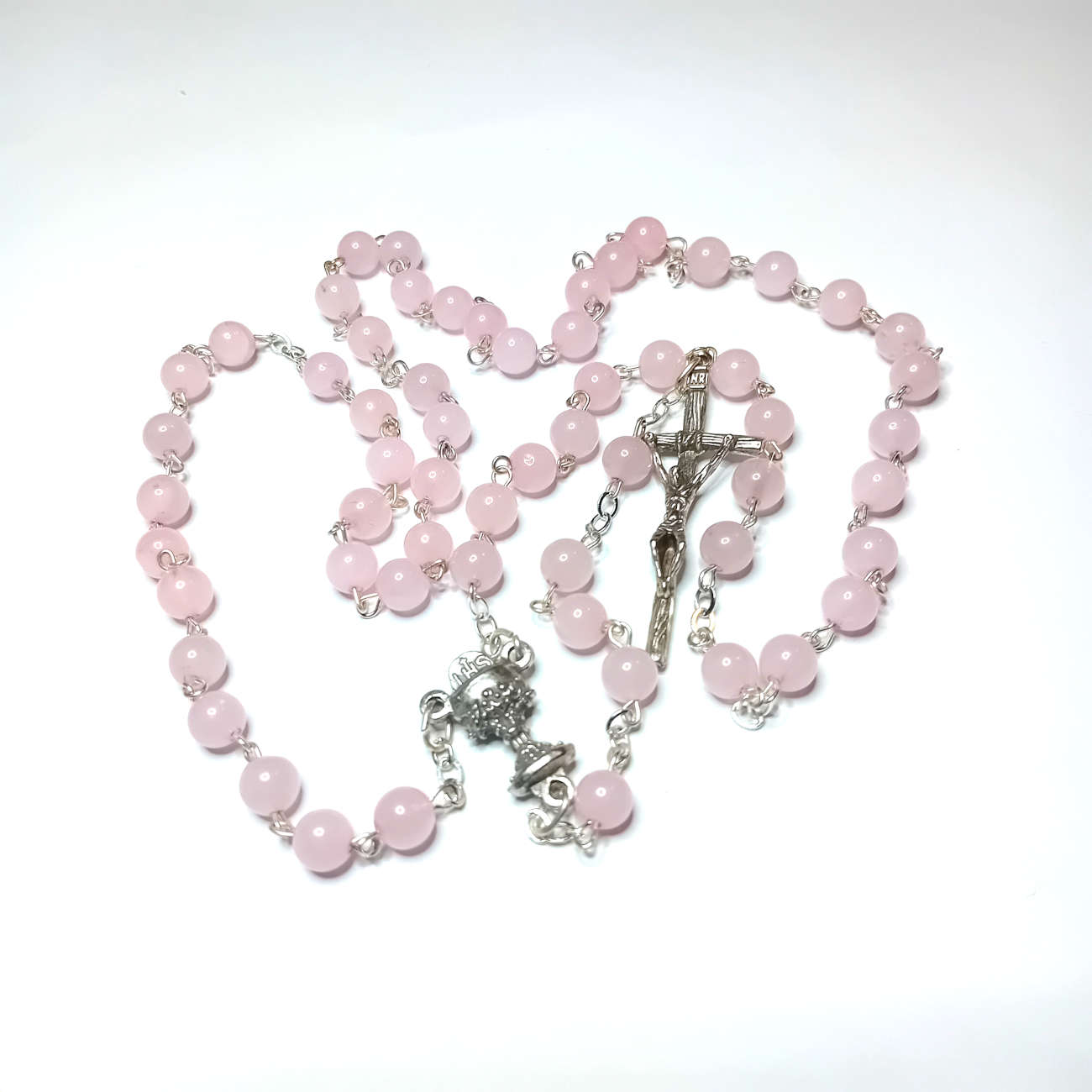 Różaniec do Pierwszej Komunii - kamień naturalny kwarc różowy 6mm