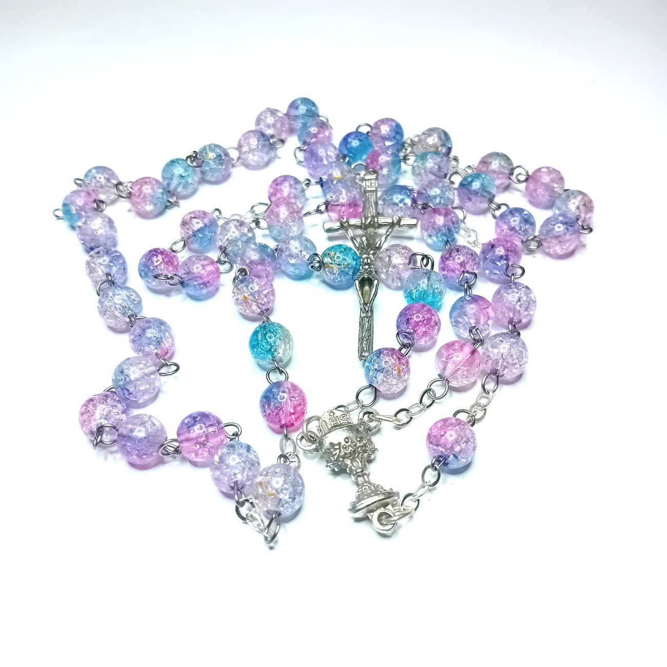 Różaniec komunijny niebiesko-różowy – żywiczny