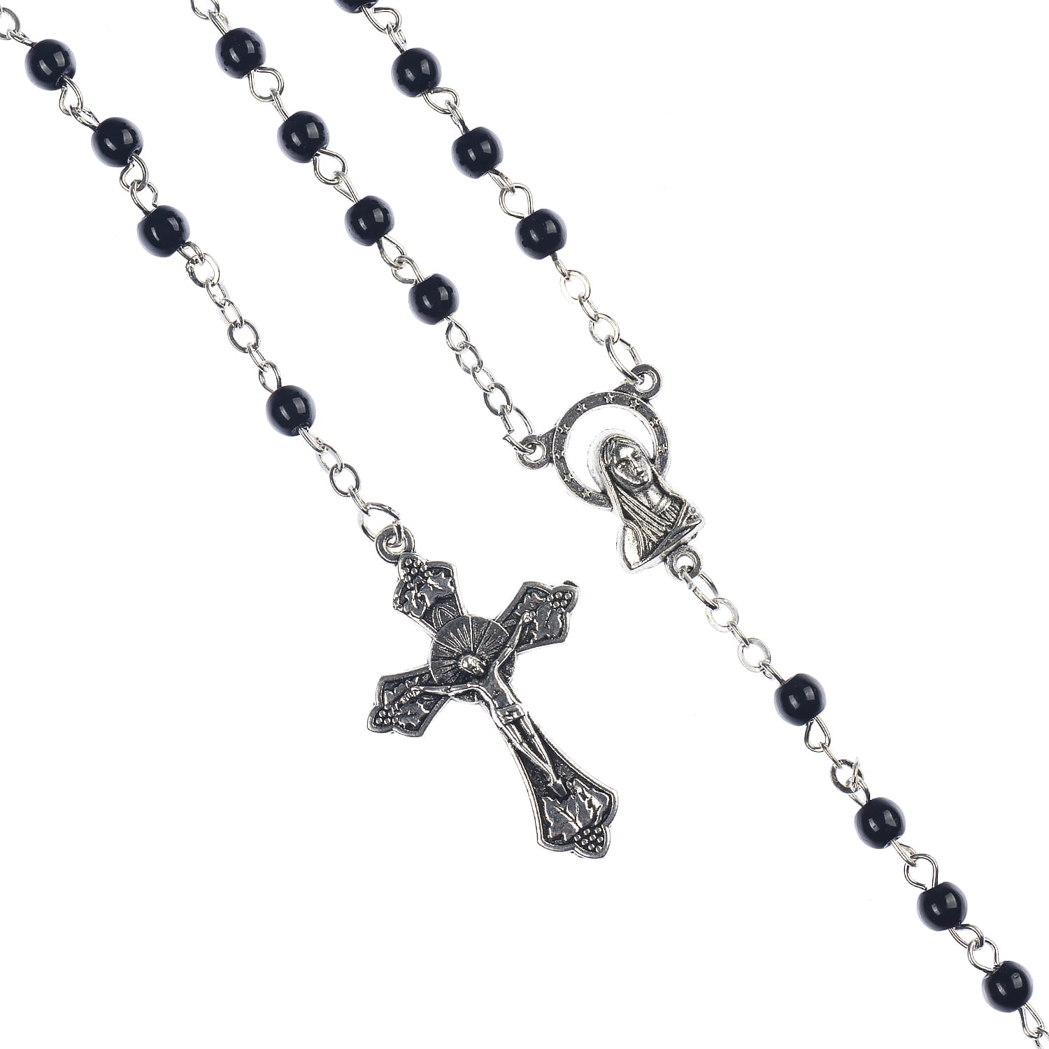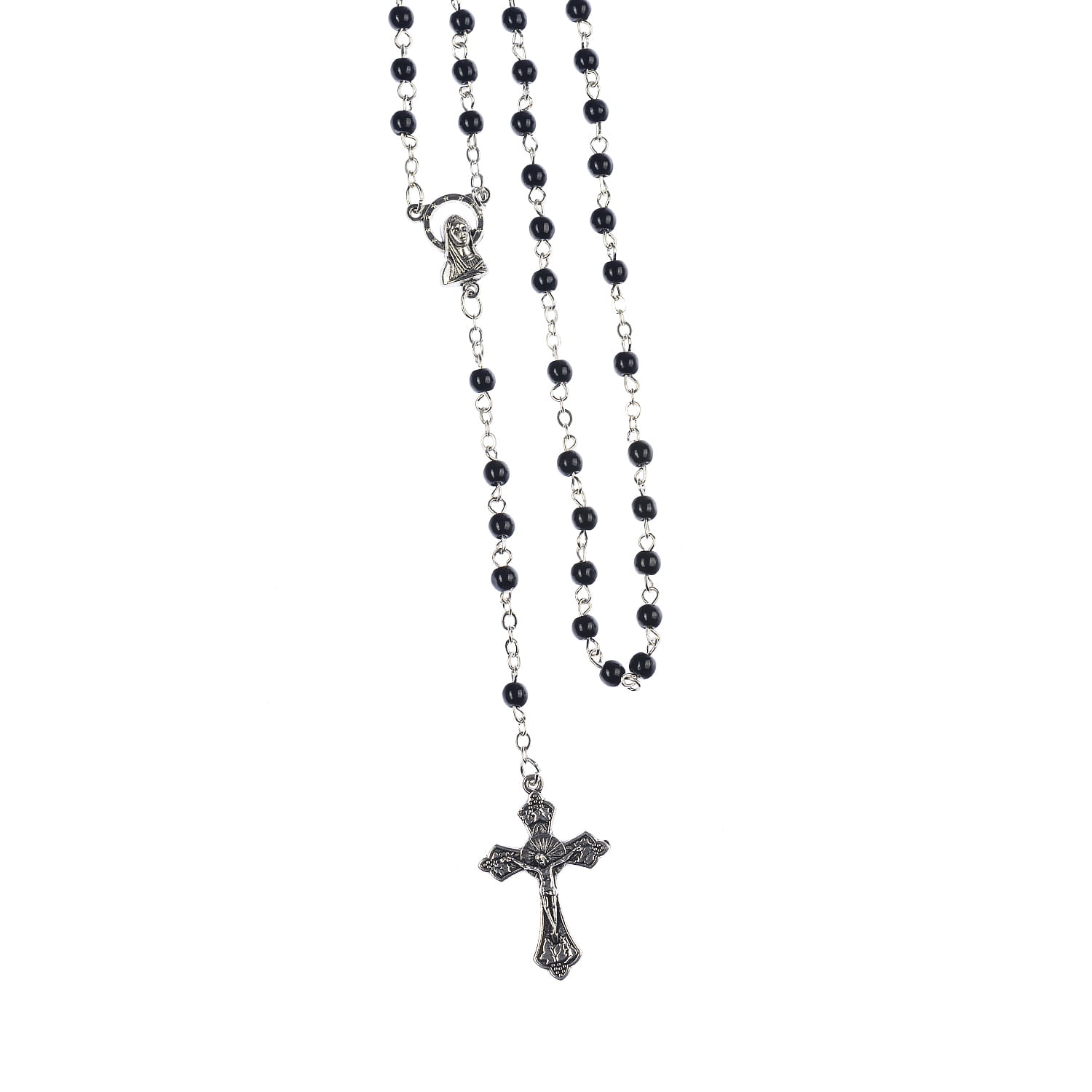 Różańce do Komunii Świętej dla dziewczynek i chłopców w dwóch kolorach, czarny i biały. Szklane paciorki w kształcie kuli. Sztyft ze stali nierdzewnej.
