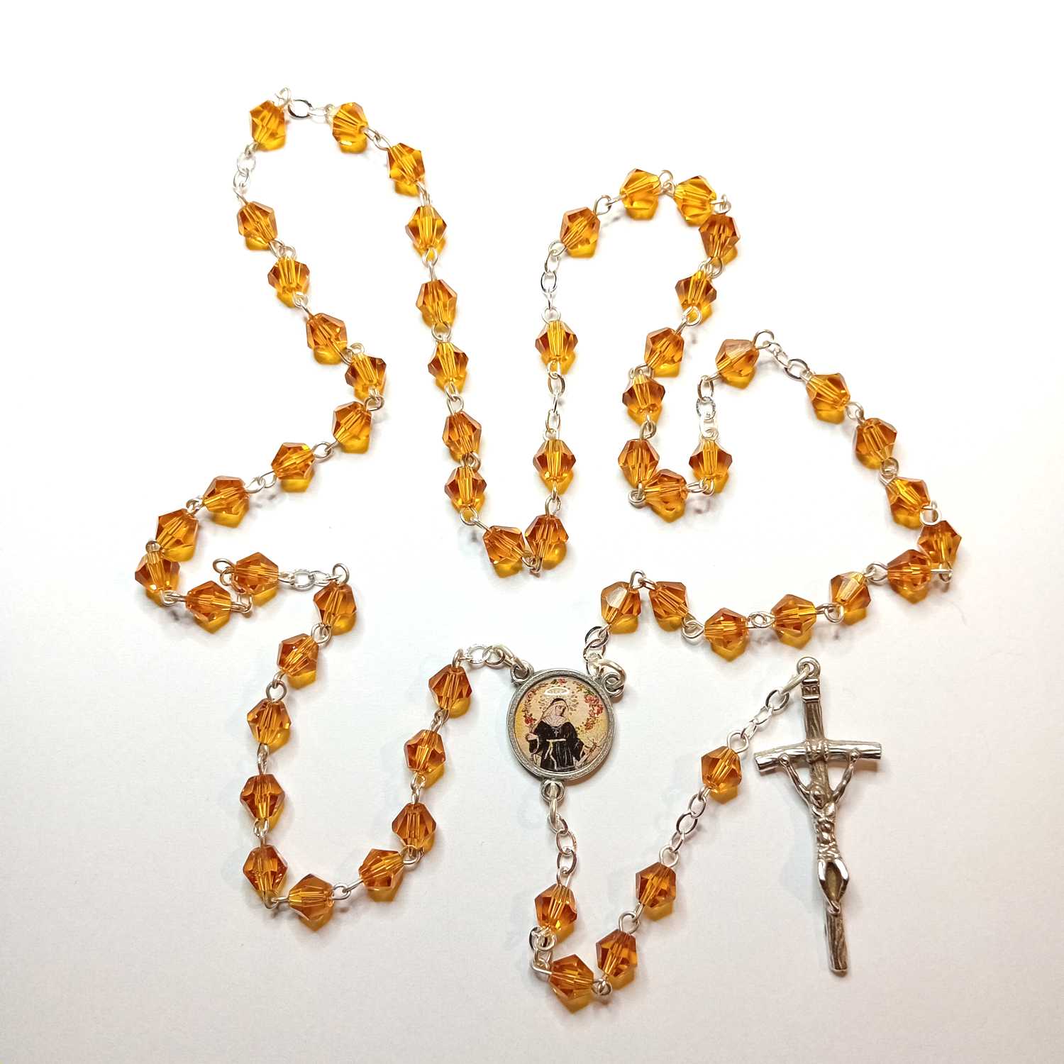 Różaniec Św. Rity – Szkło szlifowane w kolorze bursztynu