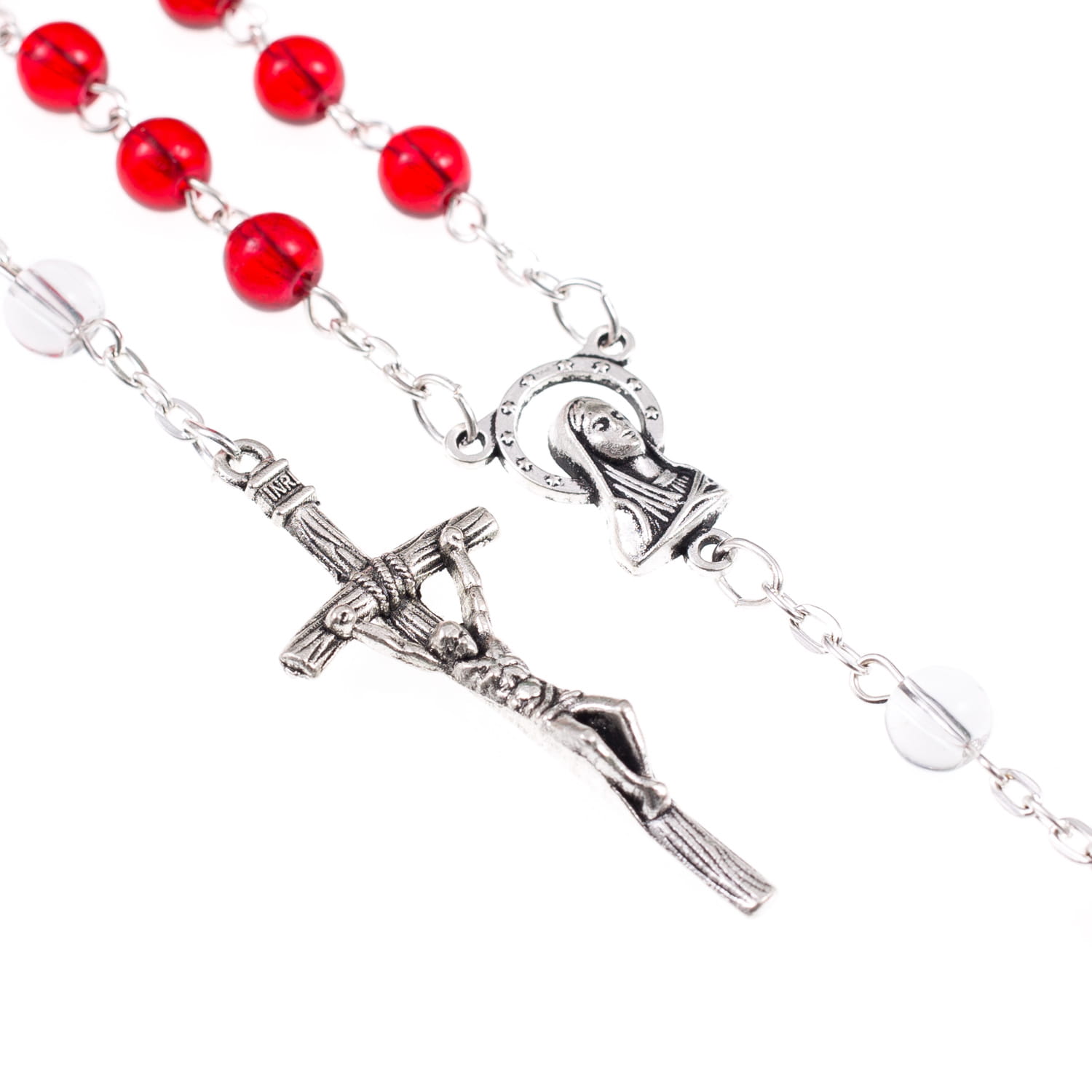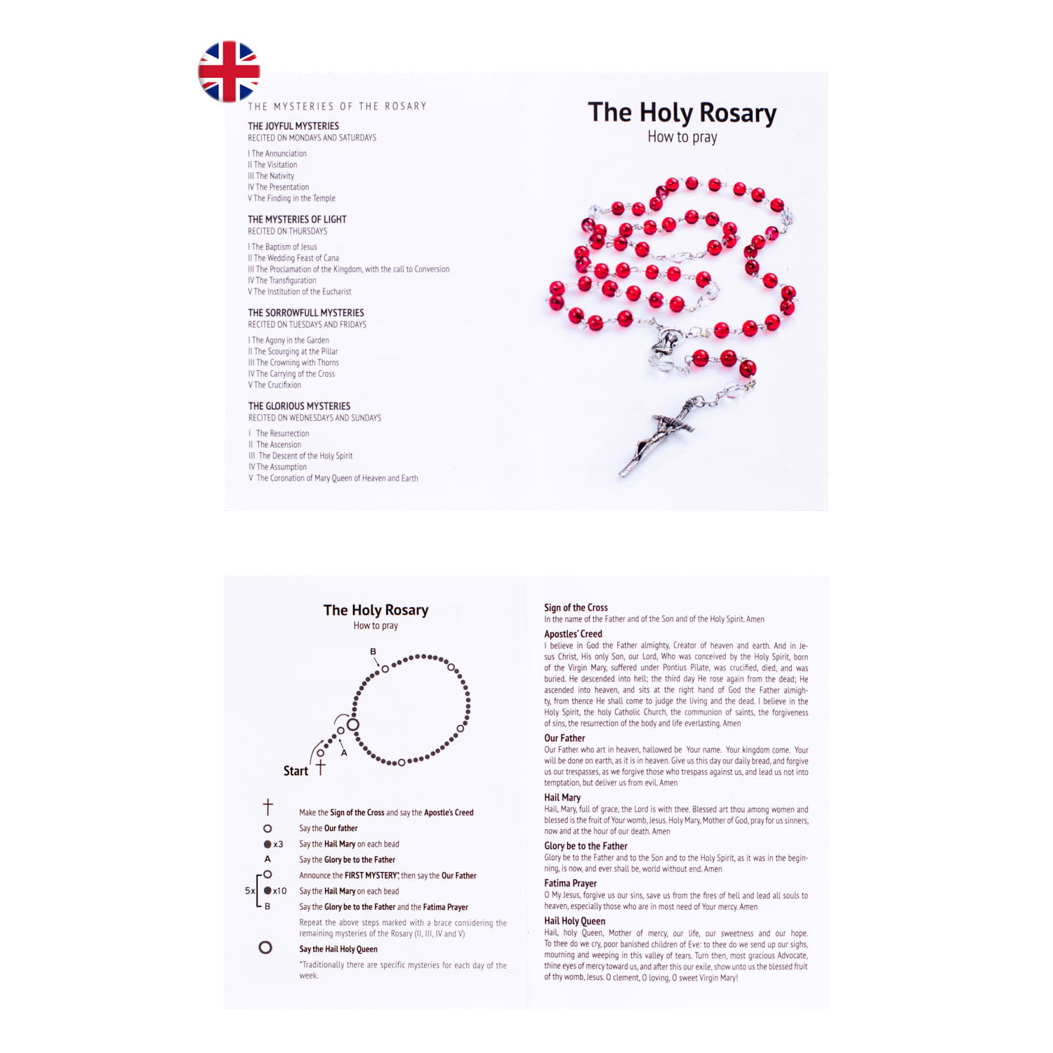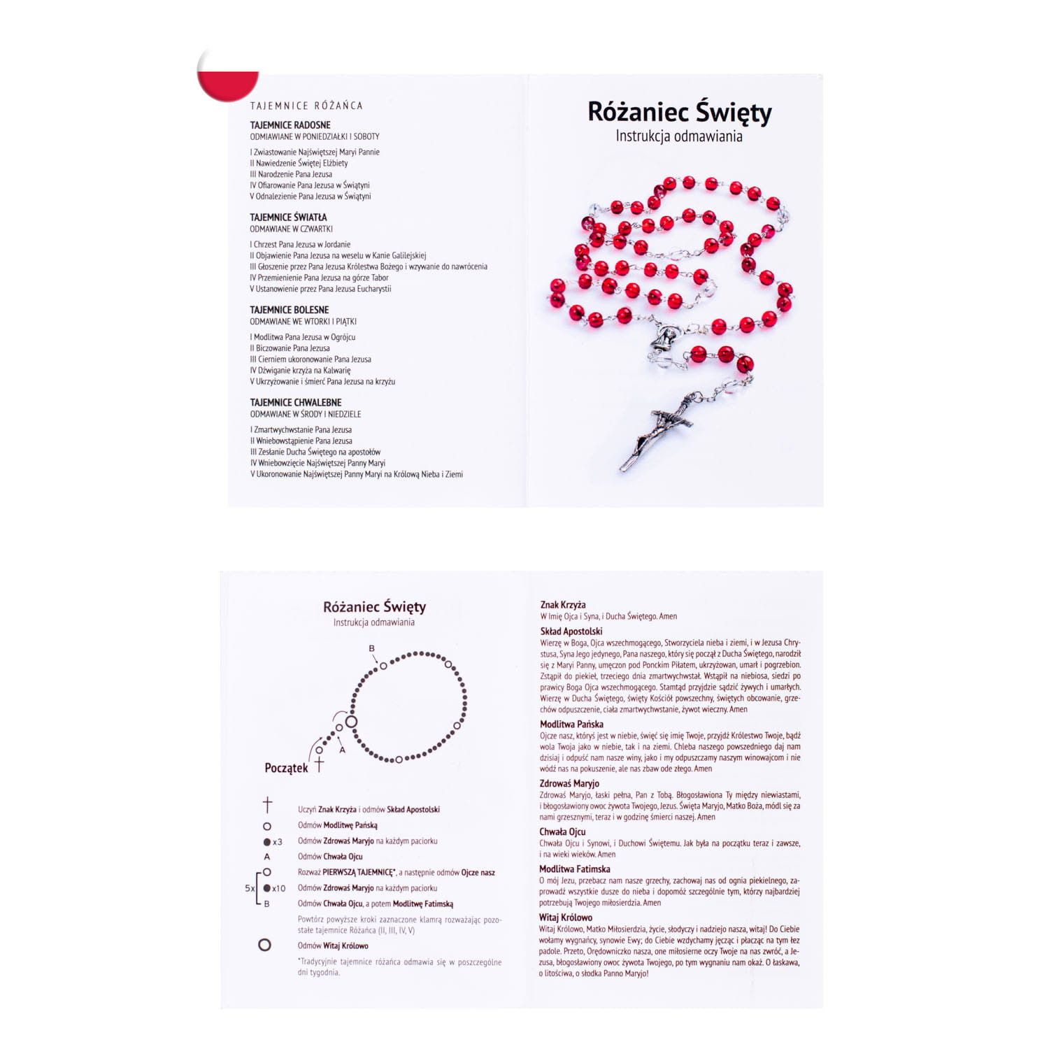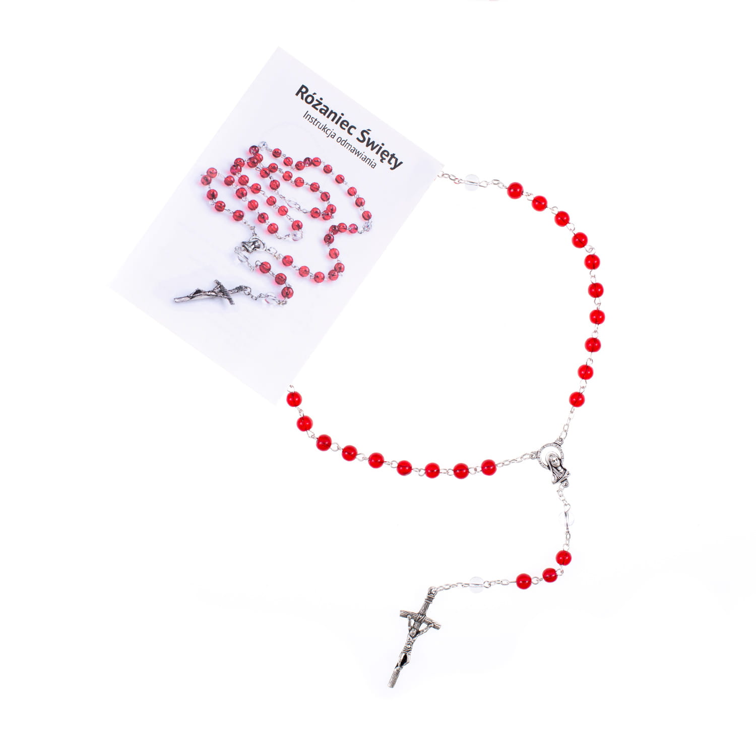 Różaniec Święty - szkło - 6 mm - instrukcja modlitwy w 4 językach (PL, ENG, IT, ESP)