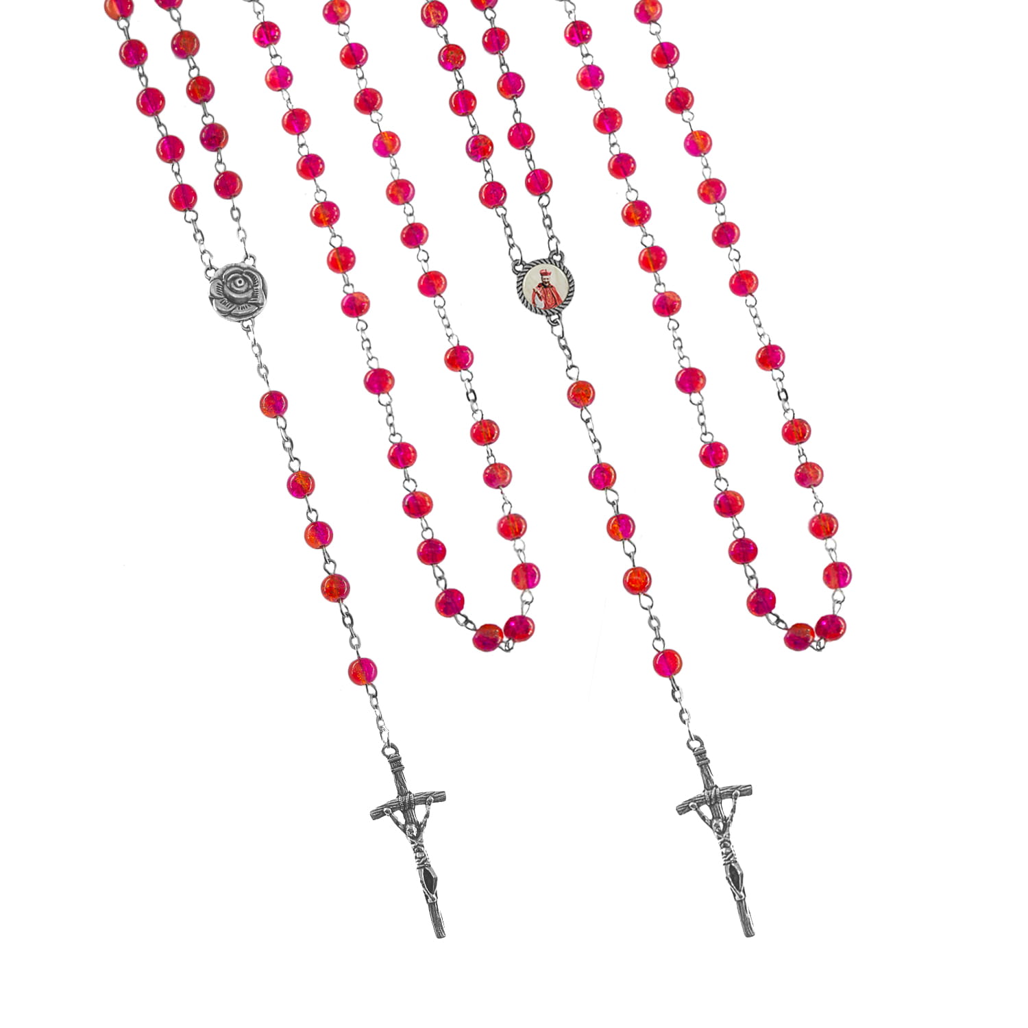 Różaniec - szkło - 6 mm - róża - kard. Stefan Wyszyński