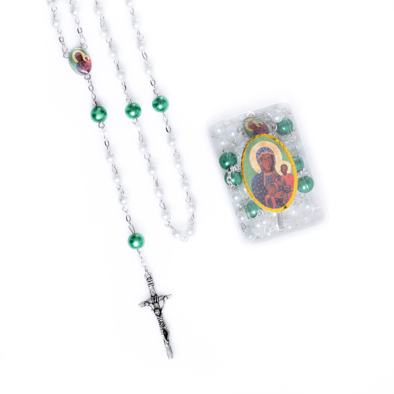 Różaniec - szkło - 6/8 mm - Matka Boża Częstochowska - pudeło