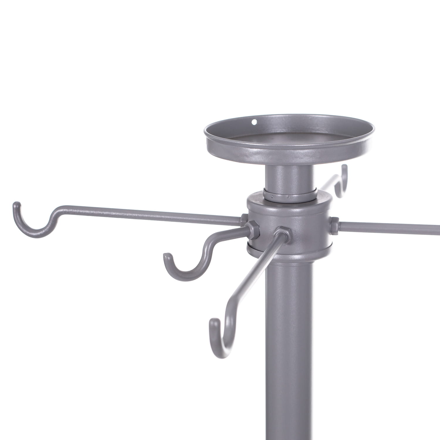 Stojak pod przybory liturgiczne. Posiada uchwyty na kropidło, trybularz, miskę, haczyk, i podstawkę pod łódkę. Stojak zabezpieczony lakierem ochronnym proszkowym.