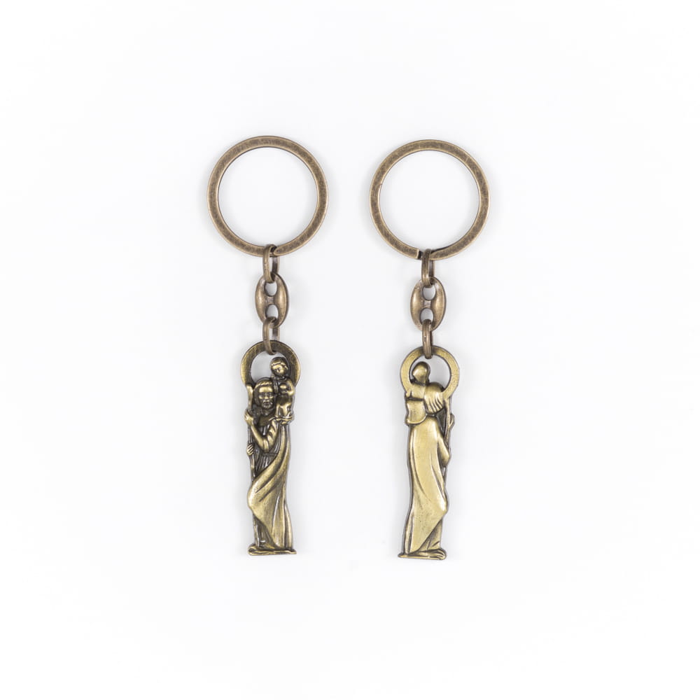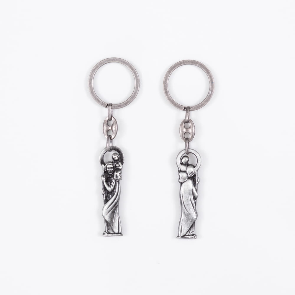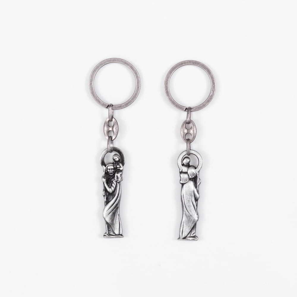 Brelok został precyzyjnie wykonany z wyjątkowego metalu, co gwarantuje solidność i trwałość. Jego szczegółowe wykonanie sprawia, że wizerunek Świętego Krzysztofa z Dzieciątkiem jest wyraźny i piękny.