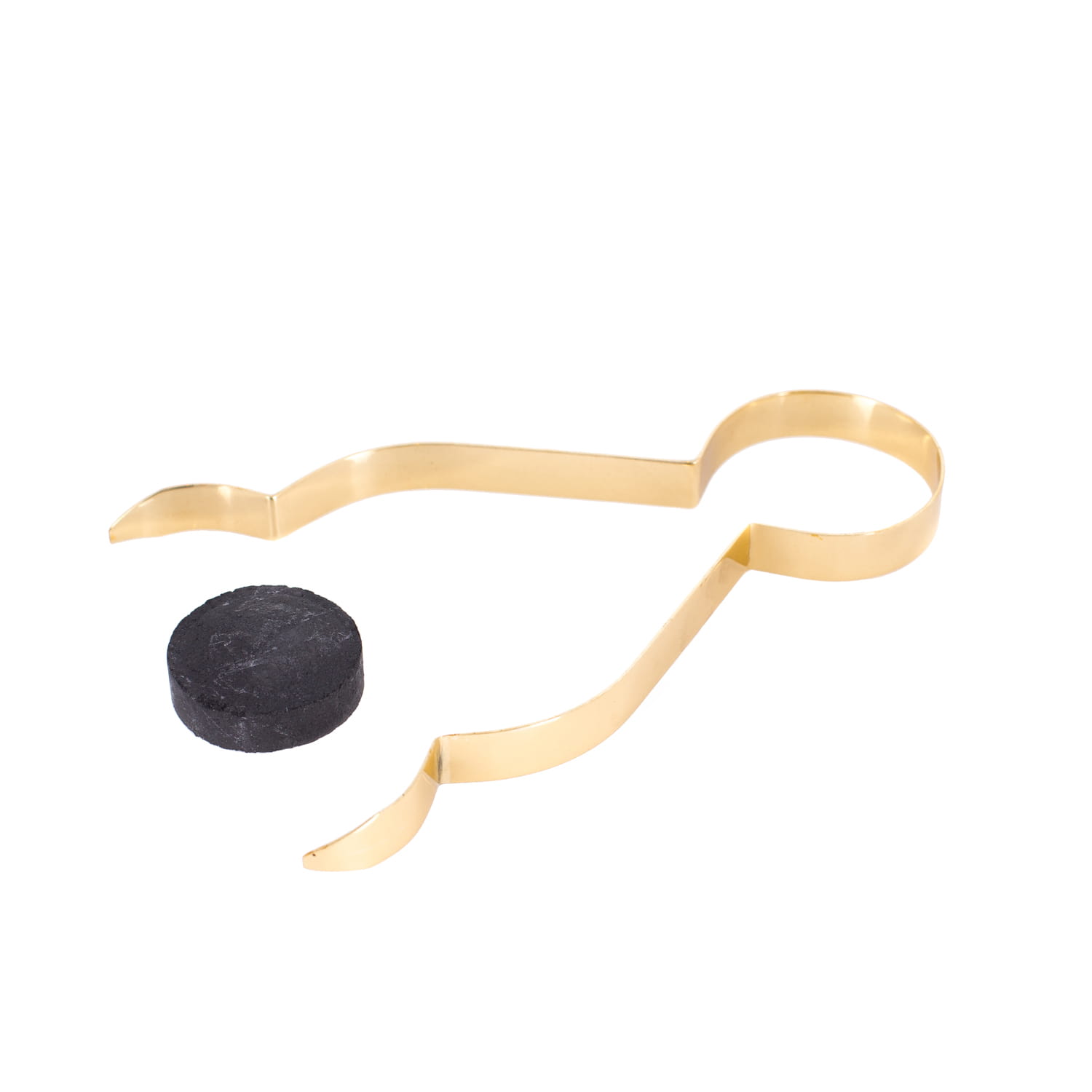 Szczypce do węgielków. Polerowane na połysk szczypce do węgli wykonane są z grubej blachy mosiężnej. Malowane lakierem proszkowym.