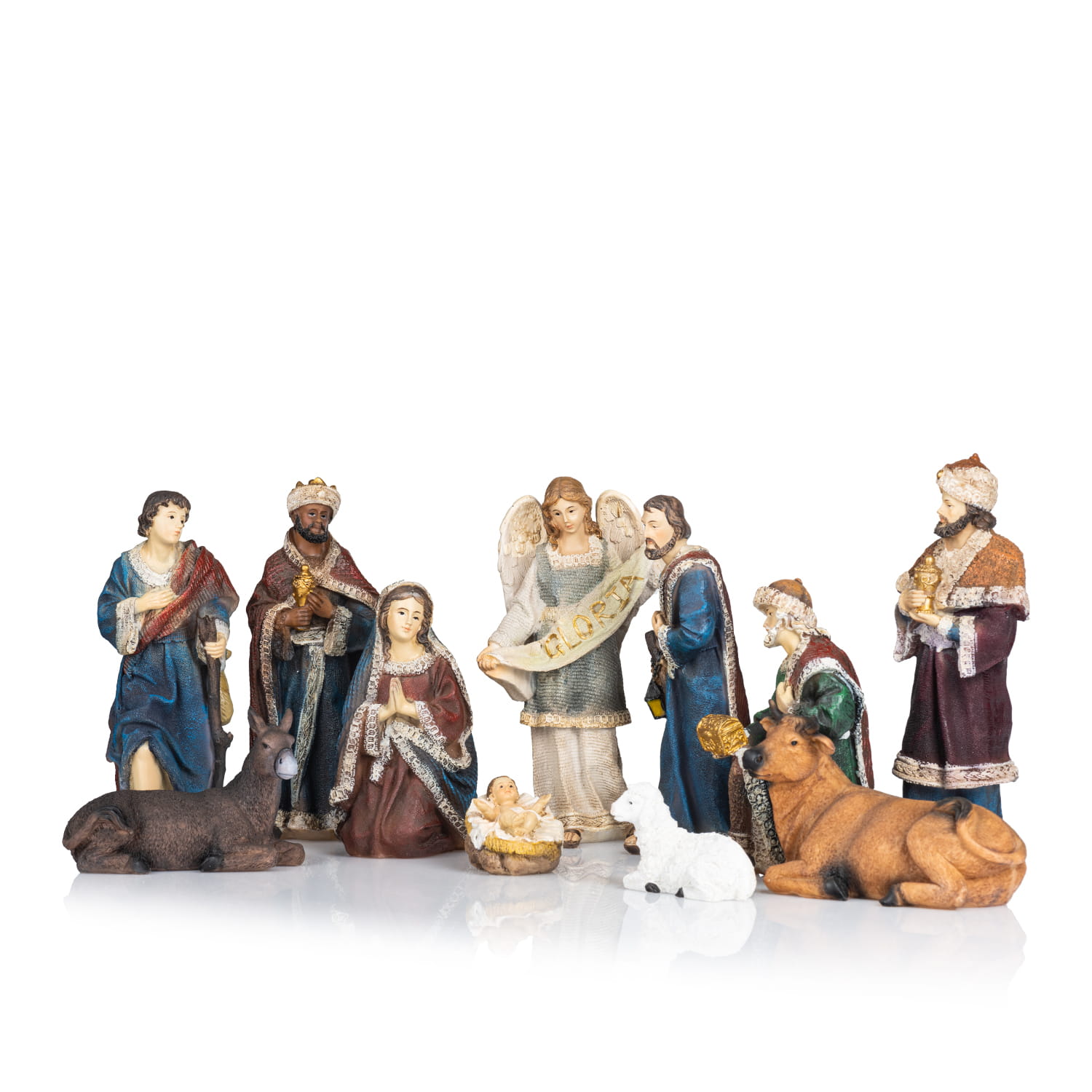 W naszym sklepie prezentujemy unikalną szopkę bożonarodzeniową, wykonaną z wysokiej jakości żywicy i ręcznie malowaną. Ta piękna i szczegółowo wykonana szopka składa się z 11 figurek, przedstawiających postacie związane z pierwszym Bożym Narodzeniem.