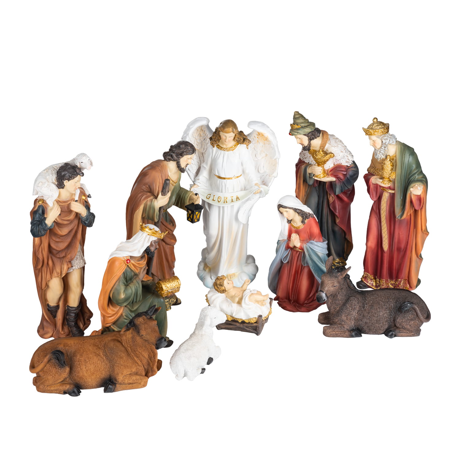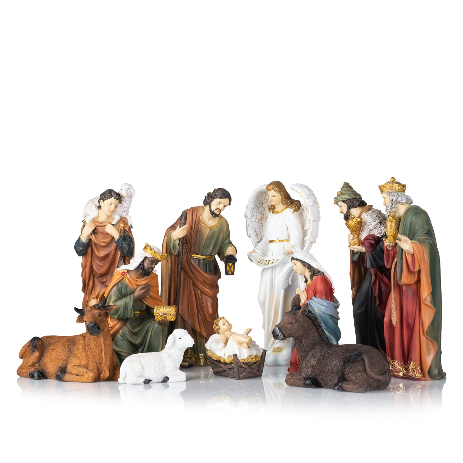 Ta konkretna szopka bożonarodzeniowa składa się z 11 figurek wykonanych z żywicy. Każda figura została ręcznie pomalowana, co dodaje jej autentycznego i rustykalnego wyglądu. Szopka jest bogata w detale, takie jak, małe zwierzęta oraz postacie Maryi, Józefa, Dzieciątka Jezus, trzech króli, pastuszków i anioła.