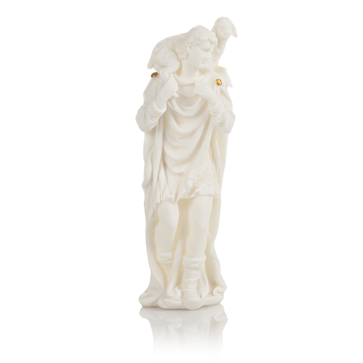 Każda figura ma starannie wyrzeźbione szaty, miękkie linie i subtelne złote zdobienia, które dodają całości wyjątkowego uroku.