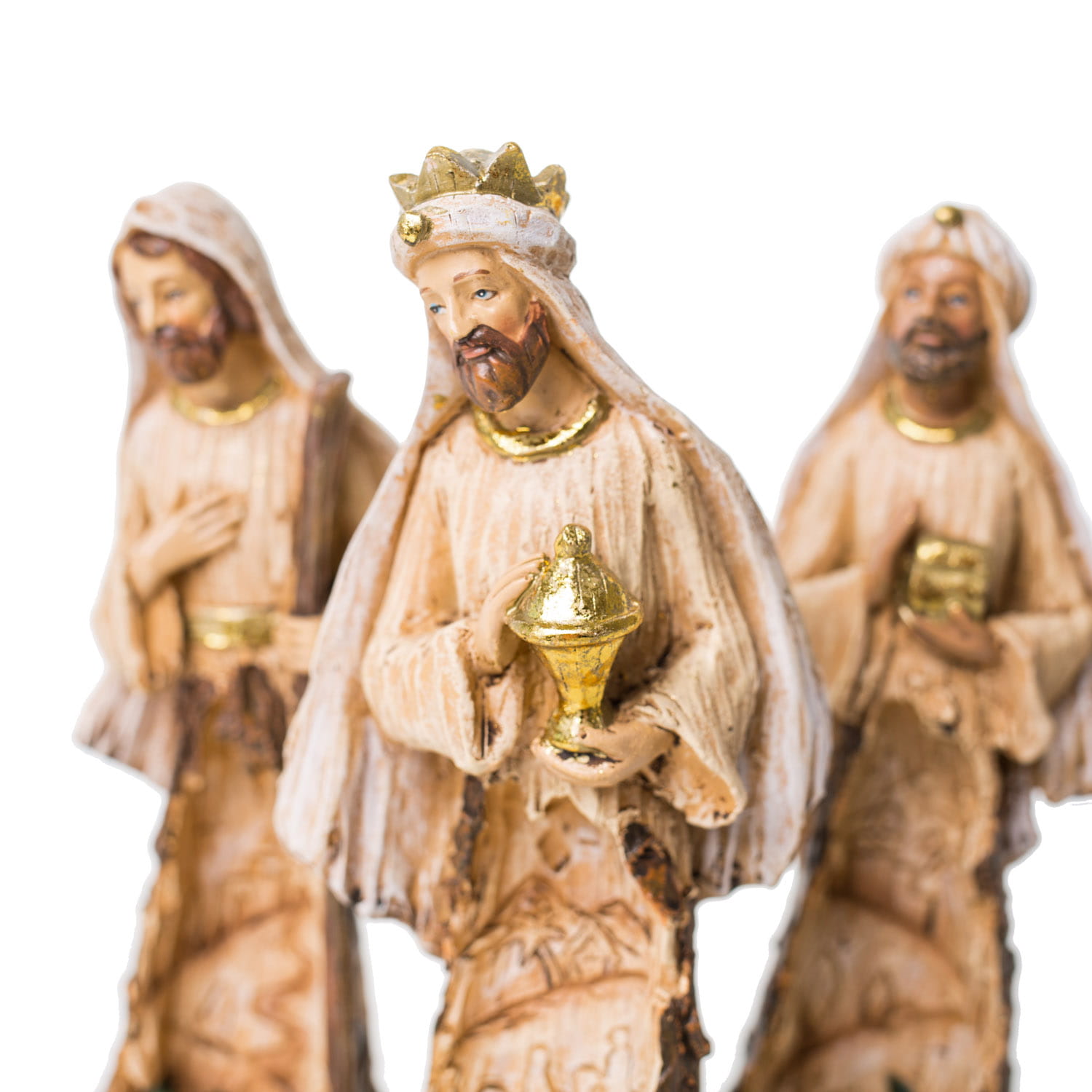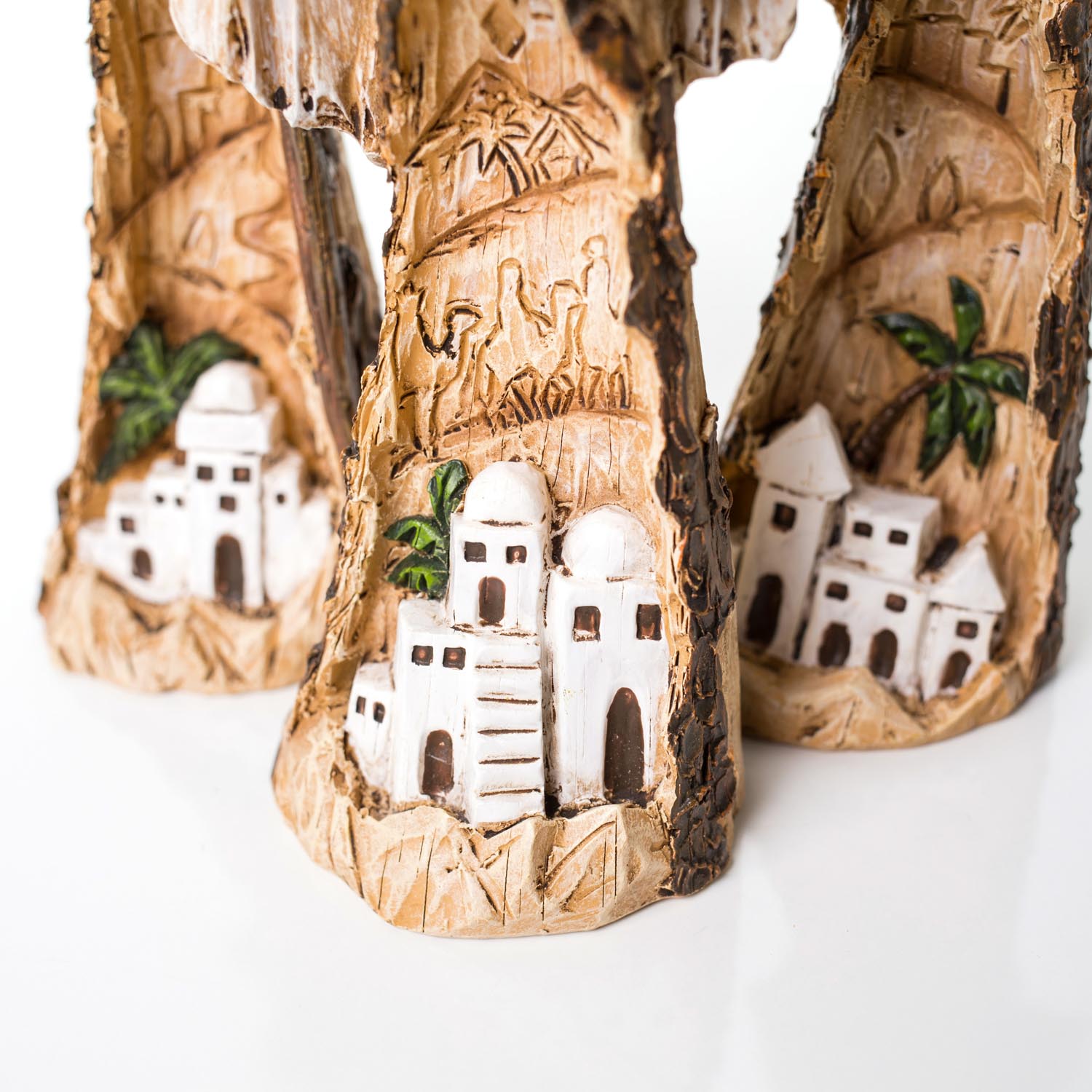 Szopka Bożonarodzeniowa wykonana w pięknej stylistyce. Figurki trzech króli i Świętej Rodziny możemy ustawić wedle własnego uznania. Ręcznie malowana szopka świąteczna wykonana jest z żywicy i pomalowana ręcznie w żywych kolorach. Wykonanie szopki nawiązuje do wydarzenia narodzin Pana Jezusa w Jerozolimie.