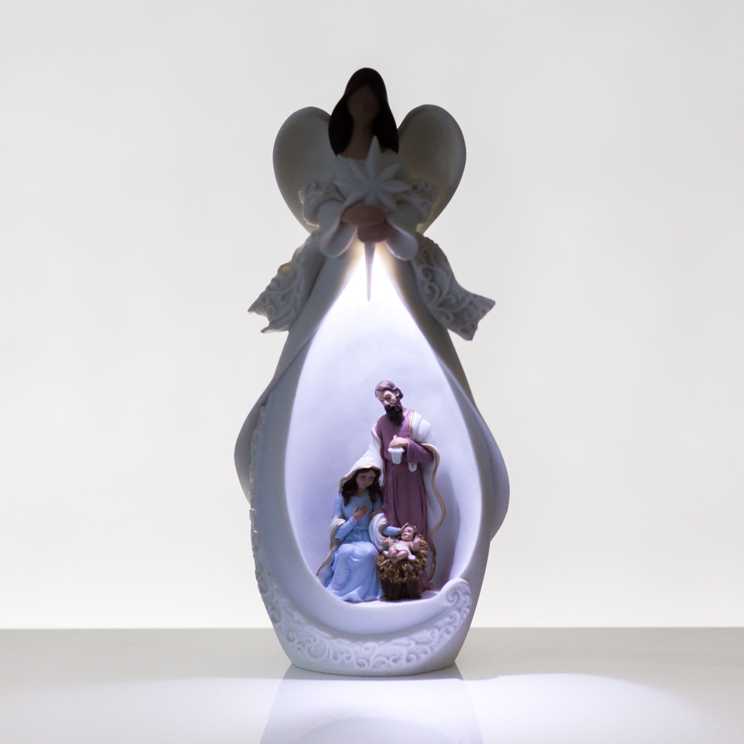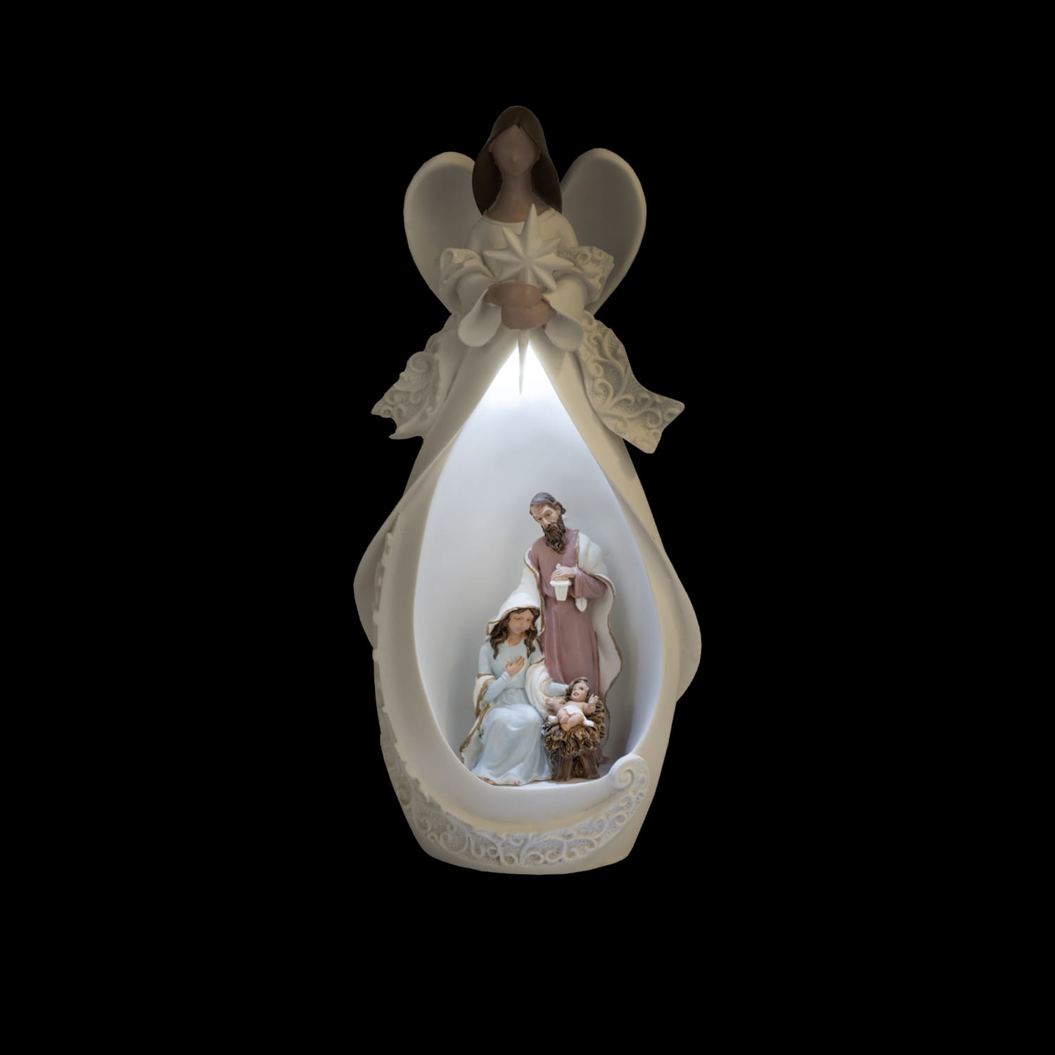 Szopka bożonarodzeniowa - Święta rodzina - Anioł - świecący - Bianco