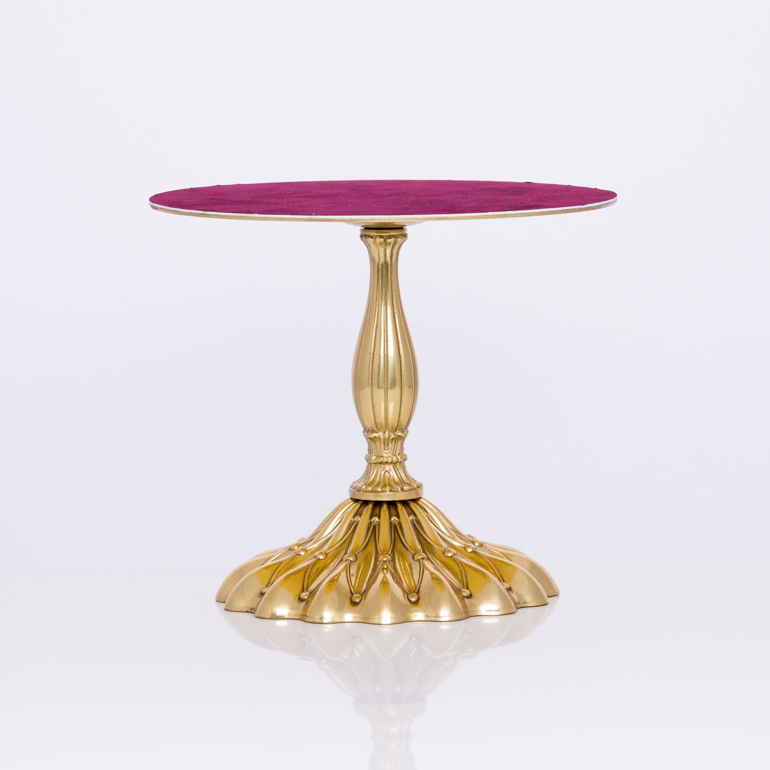 Mosiężny tron pod monstrancję wykonany z elementów włoskich. Nodus oraz podstawa tronu są zdobionymi odlewami wypolerowanymi na połysk i zabezpieczone proszkowym lakierem bezbarwnym. Koło podstawy oklejone bordowym materiałem.