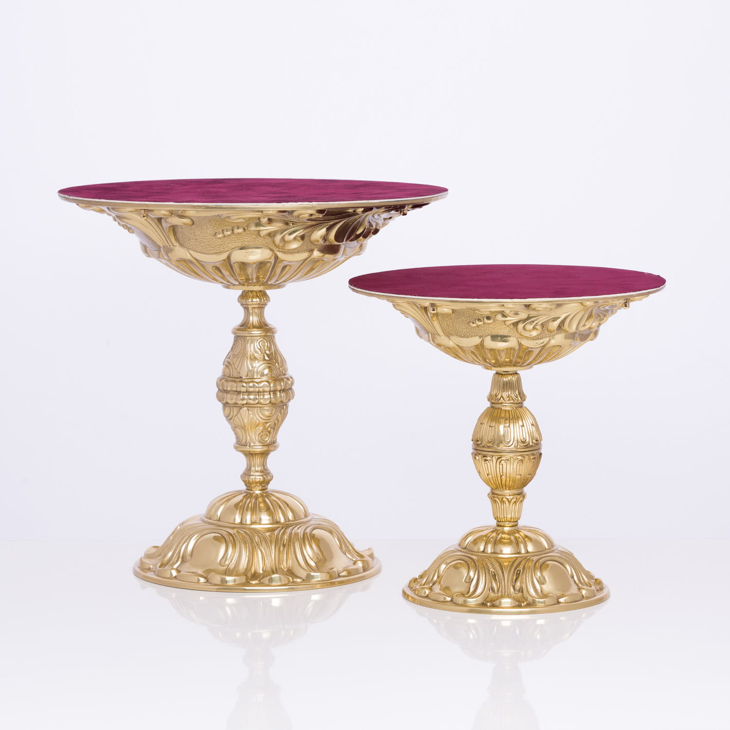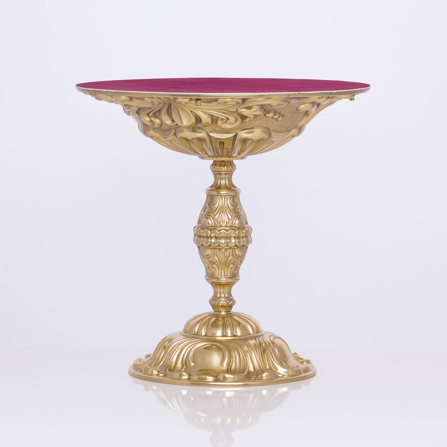 Mosiężny tron pod monstrancję wykonany z elementów włoskich. Odlewy mosiężne są zdobionymi odlewami. Zabezpieczony proszkowym lakierem bezbarwnym.
