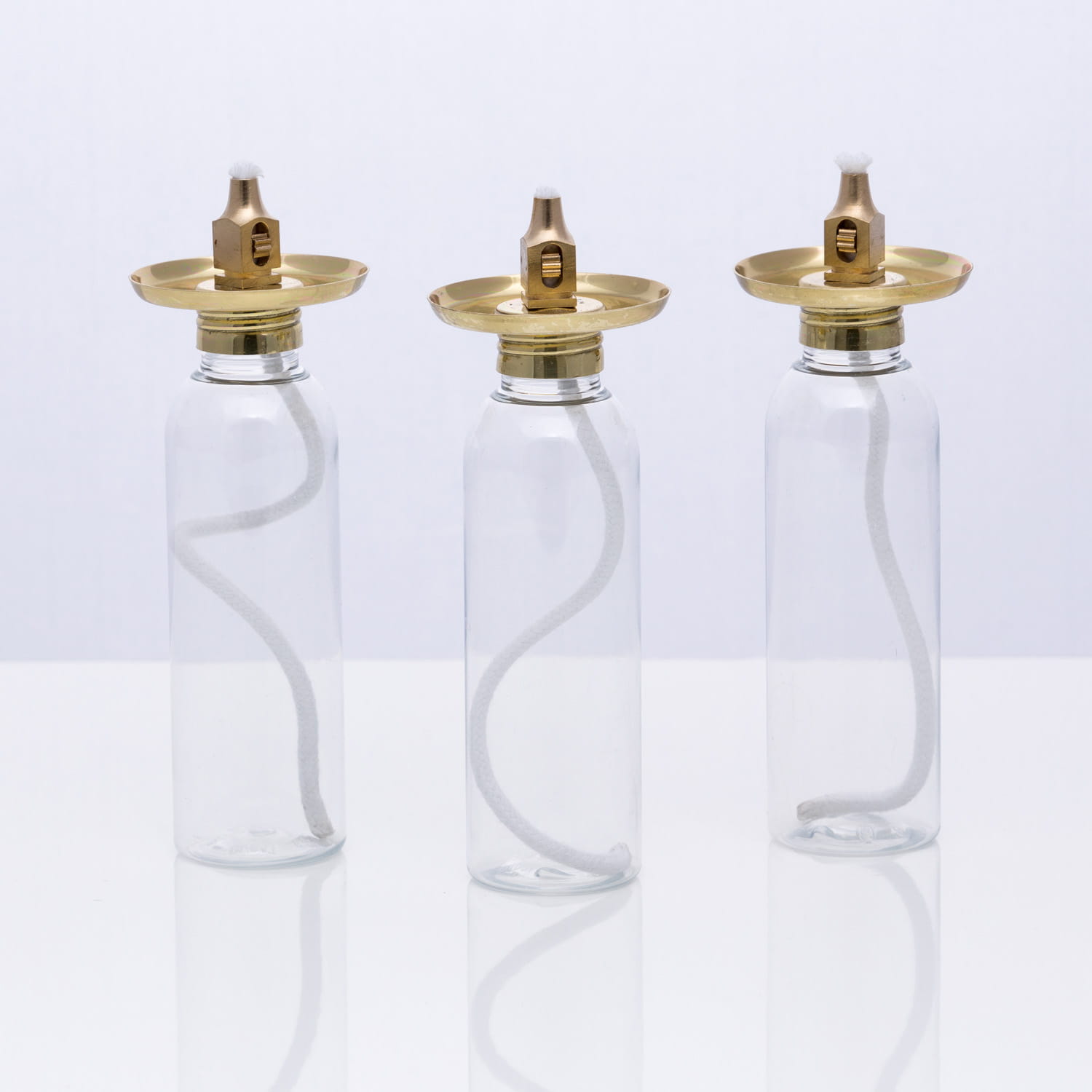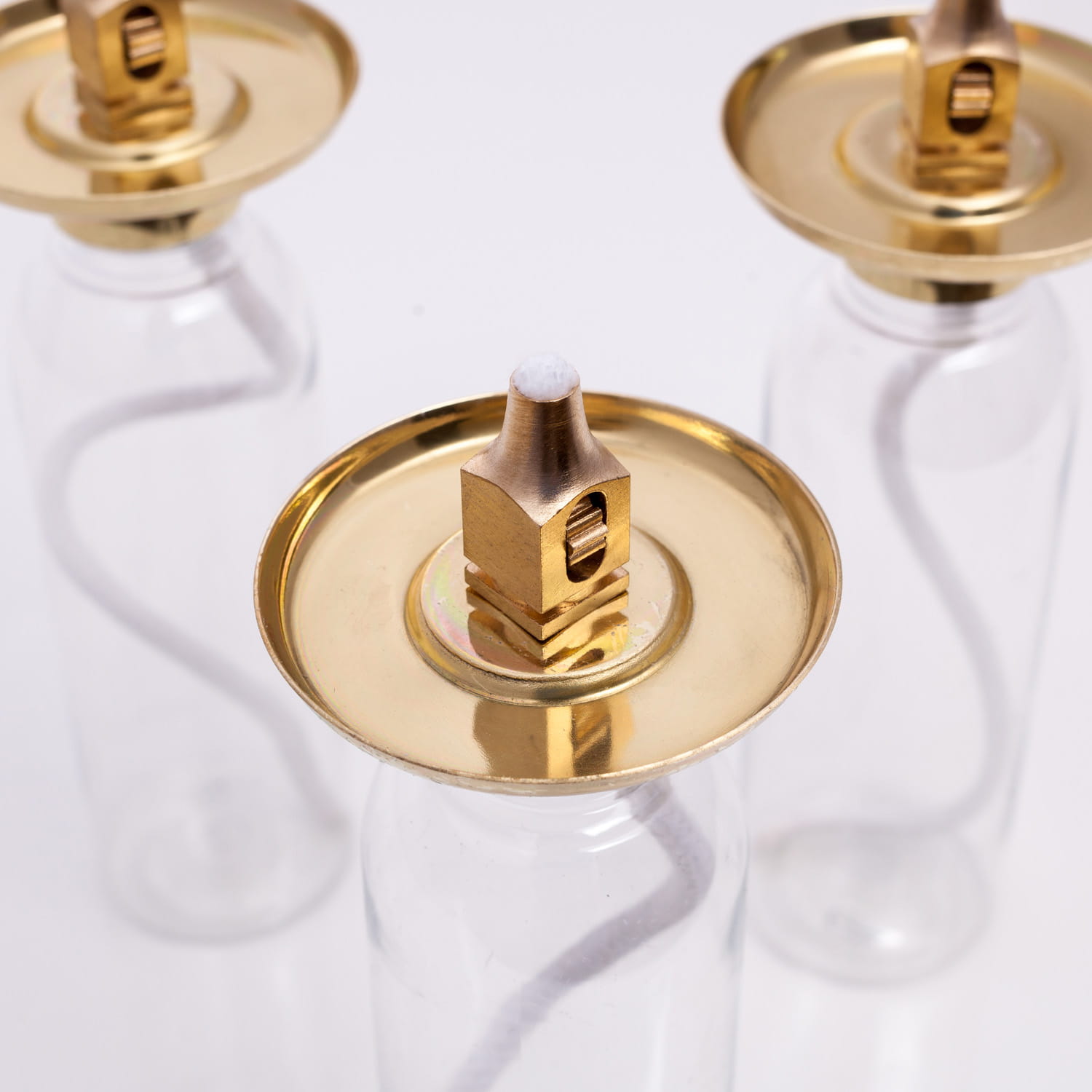 Wkład olejowy regulowany do świec. Zbiorniczek wykonany jest z tworzywa sztucznego. Talerzyk oraz mechanizm do regulacji knota wykonany jest z mosiądzu.