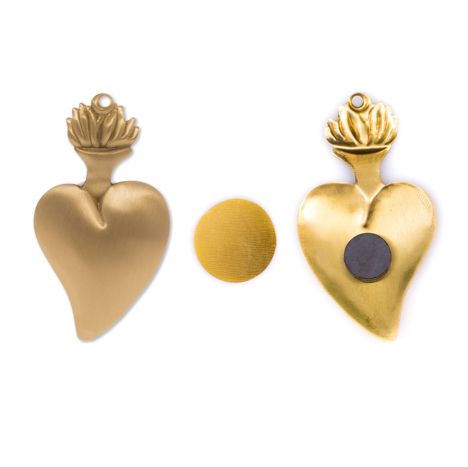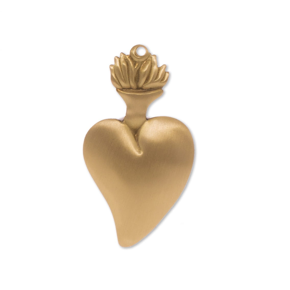 Wotum wykonane z mosiądzu. Zabezpieczone ochronnym lakierem proszkowym. Wotum w kształcie serca.