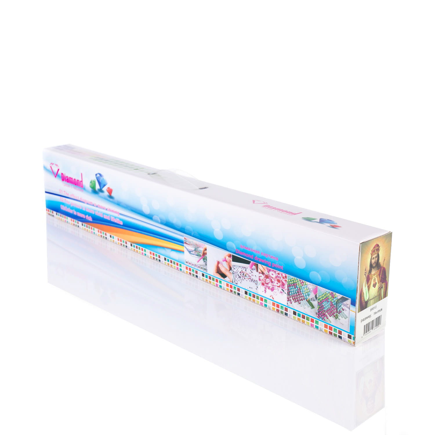 Płótno z nadrukowanym obrazem, pokryte klejem i zabezpieczone folią woreczki z diamencikami, z numerami pozwalającymi na łatwe dopasowanie do symbolu zgodnie z legendą umieszczoną na płótnie